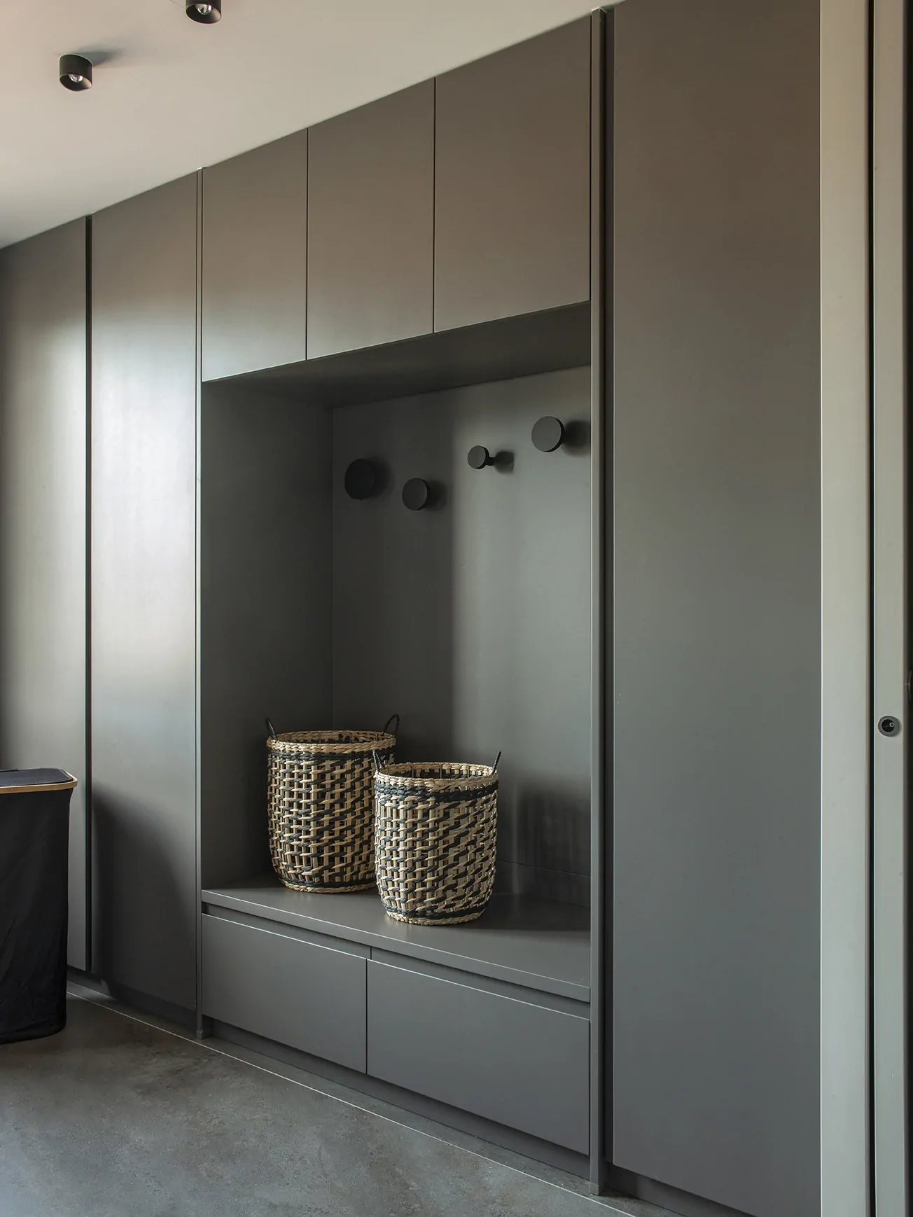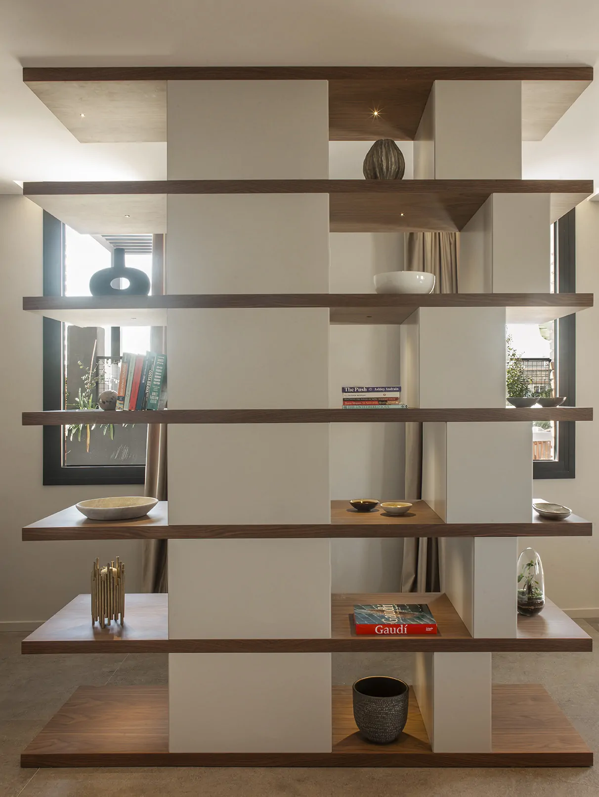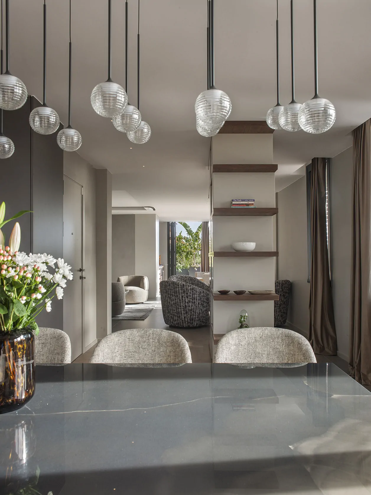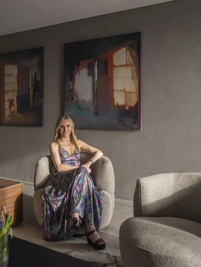 Al cruzar la puerta, un mueble diseñado por Veronica Mimoun recibe al visitante. No es solo un elemento estético, sino también un gesto arquitectónico: organiza, separa y define el inicio del recorrido, marcando el tono del proyecto desde el primer instante.